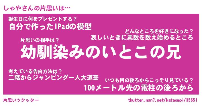| 男性向けラノベタイトル風あだ名 | 『しゃやの憂鬱』 |