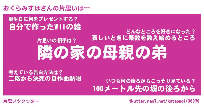 | ヘコむあだ名 | 『おくにー』『なまこ酢』 |