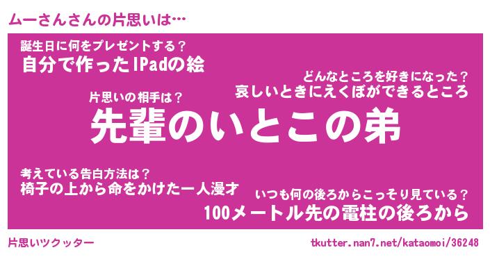 | ヘコむあだ名 | 『ムーもー』『酢こんぶ』『ムーお』 |