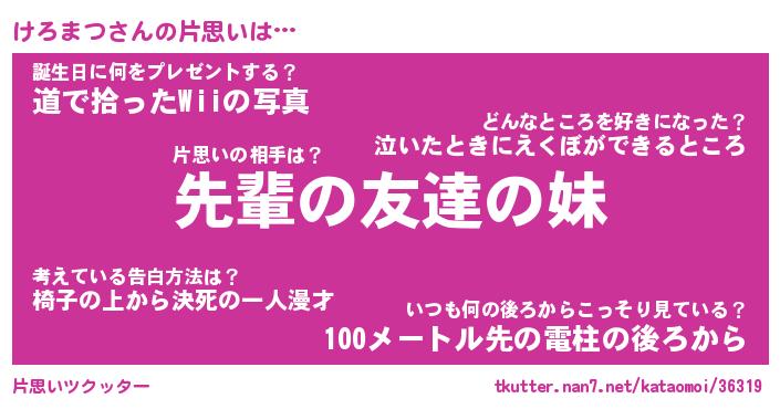 | ヘコむあだ名 | 『けろっふぃ~』『豆乳』『けろお』 |