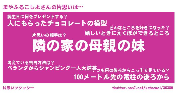 | 胡散臭い通販商品みたいなあだ名 | 『必ず成功するブレスレット…その名も「まやふるこしよ」』 |