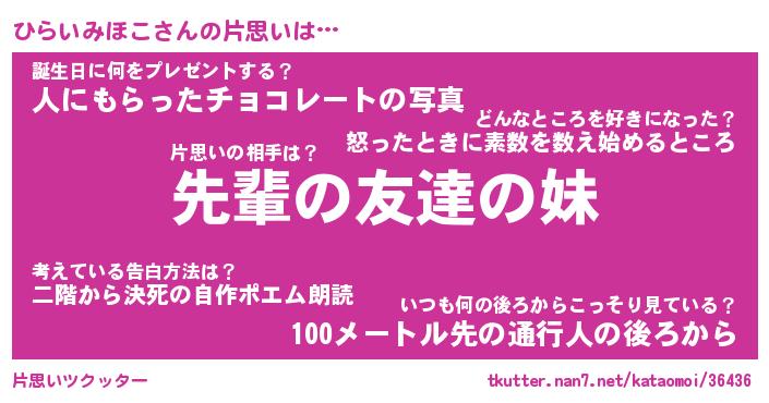 | ヒーロー風カッコイイあだ名 | 『スーパーヒライミホコ』『天弓騎士ヒラ』 |