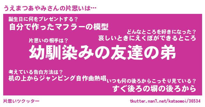 | 男性向けラノベタイトル風あだ名 | 『うえまつあやみの憂鬱』 |