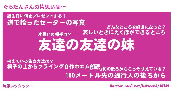 | 意味不明あだ名 | 『ペロリンぐらたん』『永久保存ぐらたん』 |