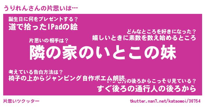 | 男性向けラノベタイトル風あだ名 | 『うりれんの憂鬱』 |