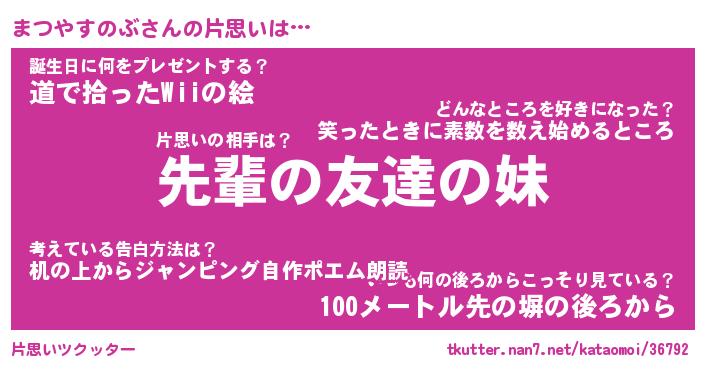 | 胡散臭い通販商品みたいなあだ名 | 『モテモテ間違いなし霊験あらたかなお札…その名も「まつやすのぶ」』 |
