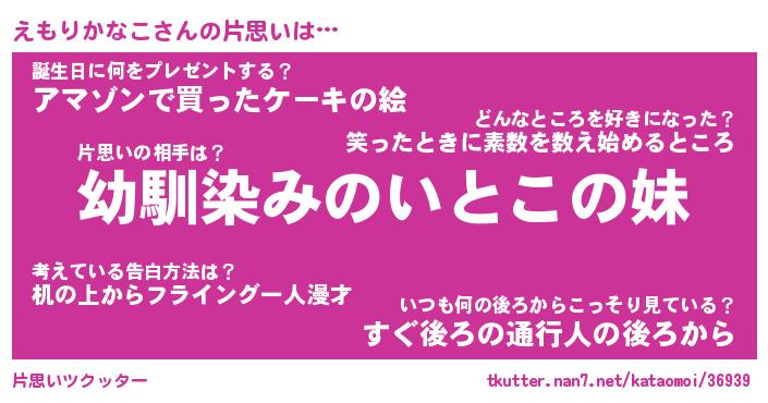 | 男性向けラノベタイトル風あだ名 | 『えもりかなこの憂鬱』 |