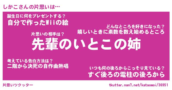 | ヘコむあだ名 | 『しかにゅー』『つくし』『しか太郎』 |