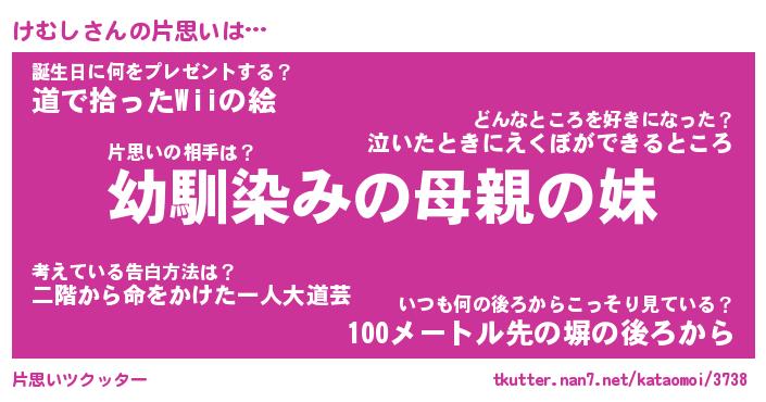 | ヘコむあだ名 | 『けむにー』『豆乳』『けむっぺ』 |