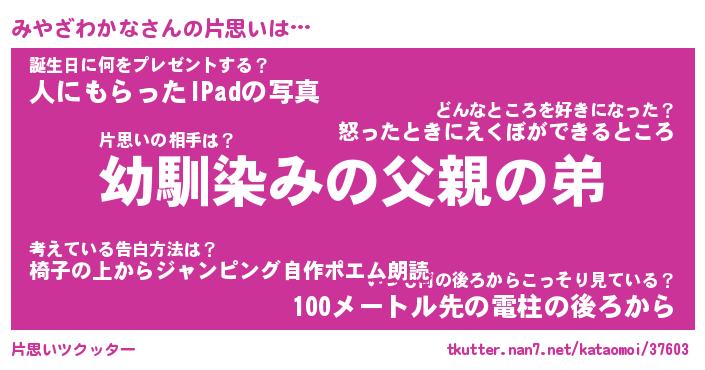 | 男性向けラノベタイトル風あだ名 | 『みやざわかなの憂鬱』 |