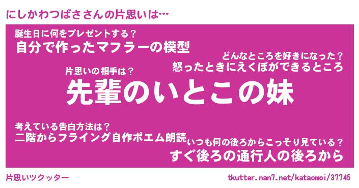 | ヘコむあだ名 | 『にしにゅー』『つくし』 |