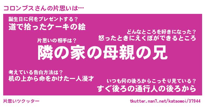 | 男性向けラノベタイトル風あだ名 | 『コロンブスの憂鬱』 |