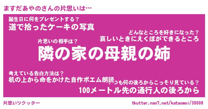 | 女子向けラノベタイトル風あだ名 | 『(仮)ますだあやののやんごとなき事情』 |