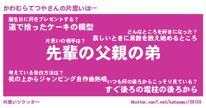 | 胡散臭い通販商品みたいなあだ名 | 『モテモテ間違いなし水晶球…その名も「かわむらてつや」』 |