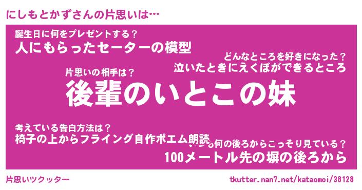 | 女子向けラノベタイトル風あだ名 | 『誰かこのにしもとかずを説明してください! ~契約から始まるウェディング~』 |