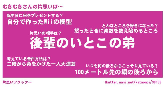 | ヘコむあだ名 | 『むきにゅー』『つくし』『むきっぺ』 |