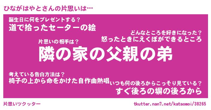 | 胡散臭い通販商品みたいなあだ名 | 『モテモテ間違いなしブレスレット…その名も「ひながはやと」』 |