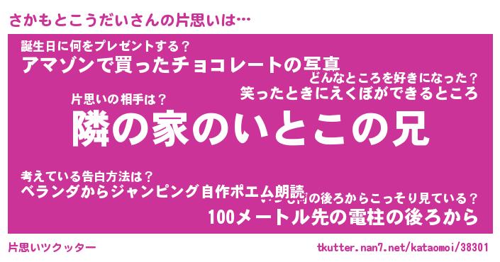 | 胡散臭い通販商品みたいなあだ名 | 『必ず成功する霊験あらたかなお札…その名も「さかもとこうだい」』 |