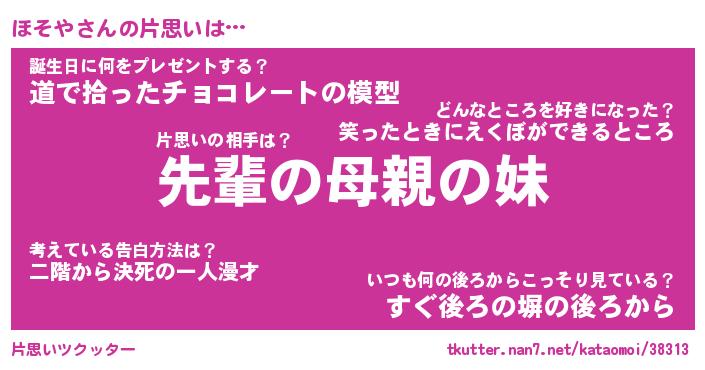 | ヘコむあだ名 | 『ほそにー』『酢こんぶ』『ほそを』 |