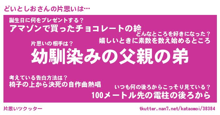 | 男性向けラノベタイトル風あだ名 | 『どいとしおの憂鬱』 |