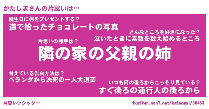 | 男性向けラノベタイトル風あだ名 | 『かたしまの憂鬱』 |