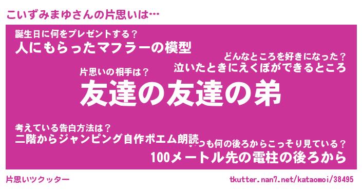 | 恥ずかしいあだ名 | 『プリティーこいずみまゆ』『こいっちょ』 |