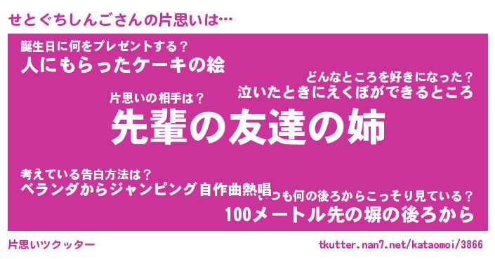 | 意味不明あだ名 | 『ペロリンせとぐちしんご』 |