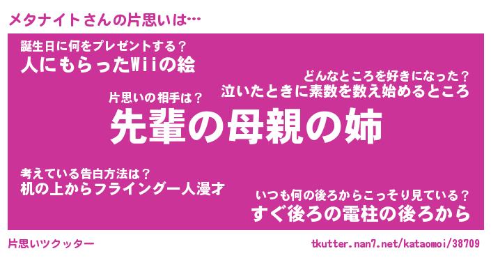 | ファンタジー風あだ名 | 『メタフェル』『エターナルメタナイトー』 |