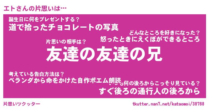 | ヘコむあだ名 | 『エトっふぃ~』『牛乳』『エトを』 |