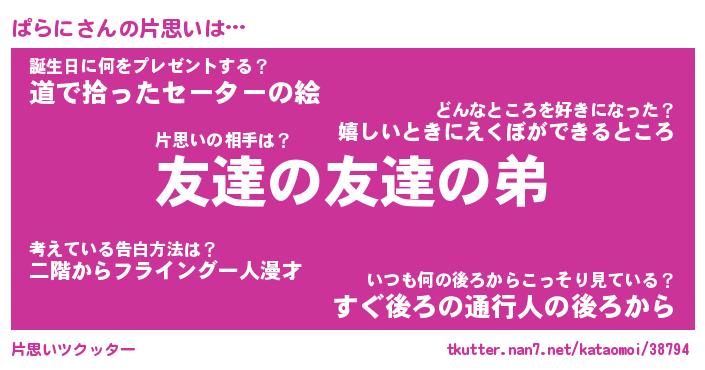 | ヒーロー風カッコイイあだ名 | 『スーパーパラニ』『ウルトラぱらにマン』 |