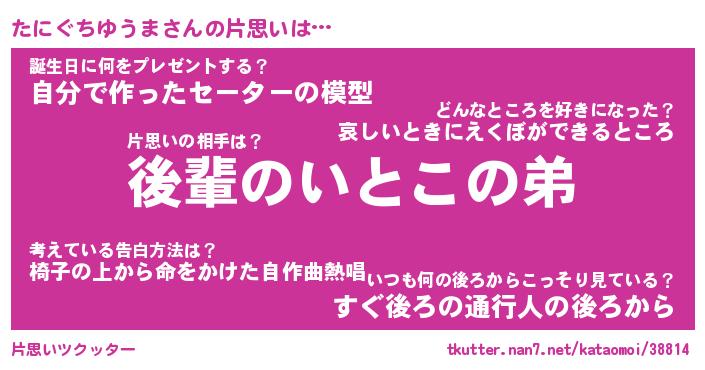 | 恥ずかしいあだ名 | 『プリティーたにぐちゆうま』『たにちん』 |