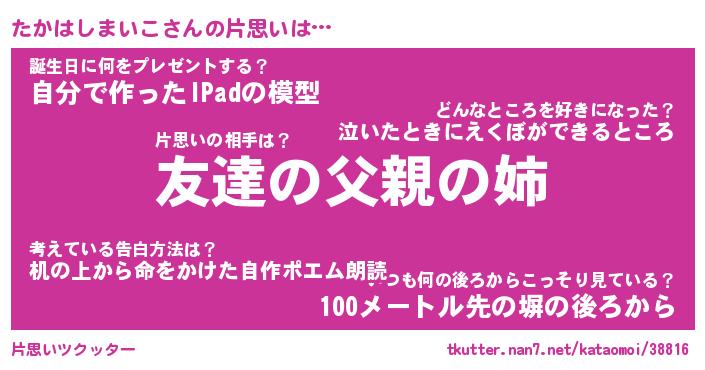 | ヘコむあだ名 | 『たかにゅー』『つくし』『たか太郎』 |