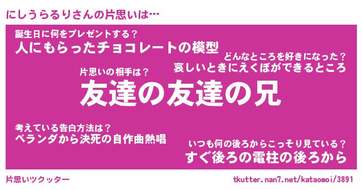 | 胡散臭い通販商品みたいなあだ名 | 『億万長者になれる霊験あらたかなお札…その名も「にしうらるり」』 |