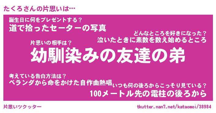 | ヘコむあだ名 | 『たくっふぃ~』『豆乳』『たくを』 |