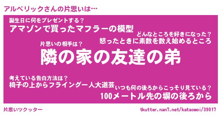 | ヘコむあだ名 | 『アルっふぃ~』『つくし』 |