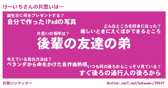 | 意味不明あだ名 | 『ペロリンけーいち』『永久保存けーいち』 |