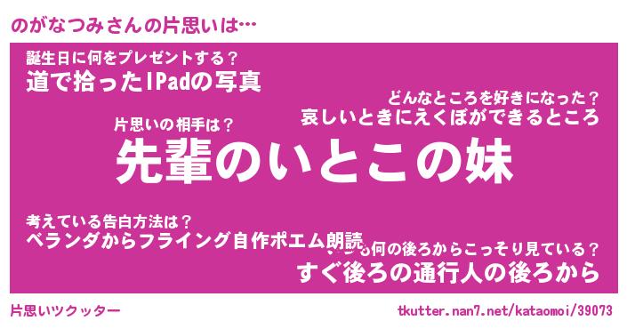 | 胡散臭い通販商品みたいなあだ名 | 『モテモテ間違いなし水晶球…その名も「のがなつみ」』 |