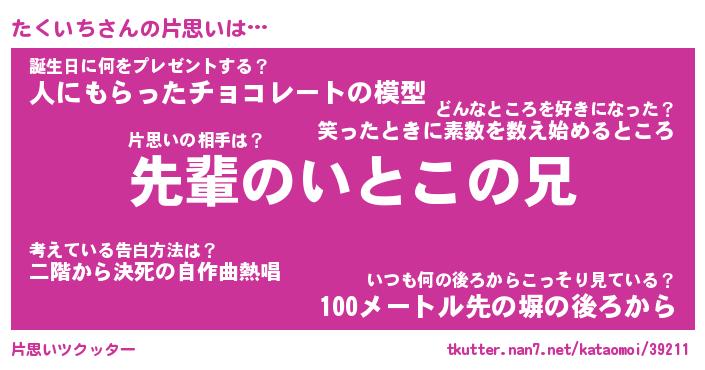 | ヘコむあだ名 | 『たくにゅー』『酢こんぶ』『たくお』 |
