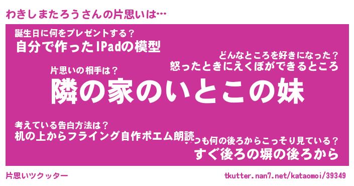 | 男性向けラノベタイトル風あだ名 | 『わきしまたろうの憂鬱』 |