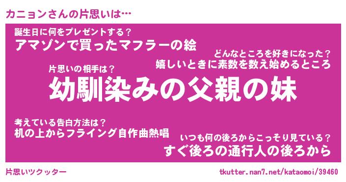 | 男性向けラノベタイトル風あだ名 | 『カニョンの憂鬱』 |