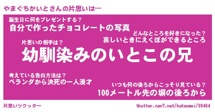 | 女子向けラノベタイトル風あだ名 | 『(仮)やまぐちかいとのやんごとなき事情』 |