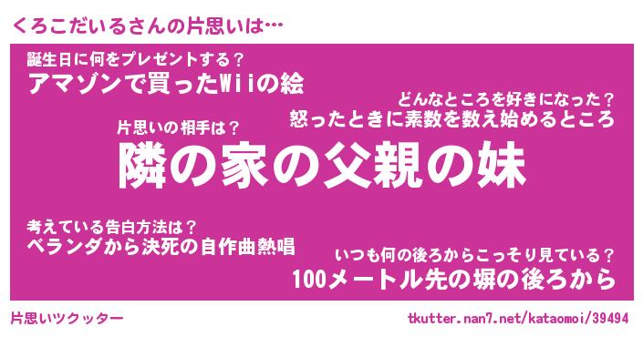 | ヘコむあだ名 | 『くろにゅー』『なまこ酢』 |