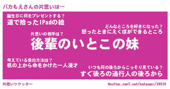 | 意味不明あだ名 | 『ペロリンバカもえ』『永久保存バカもえ』 |