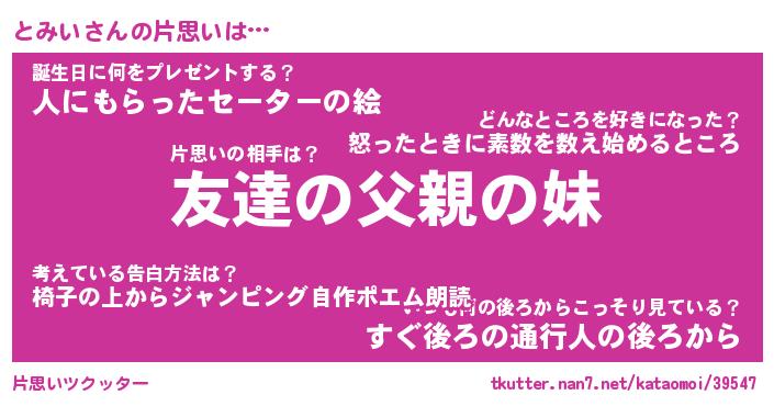 | ヘコむあだ名 | 『とみふぇ~』『牛乳』『とみっちょ』 |