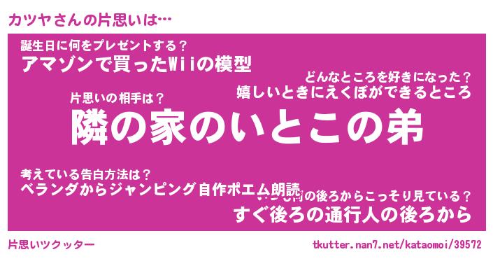 | 男性向けラノベタイトル風あだ名 | 『カツヤの憂鬱』 |
