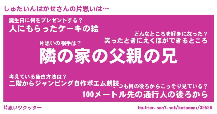 | ヘコむあだ名 | 『しゅにゅー』『牛乳』『しゅ太郎』 |