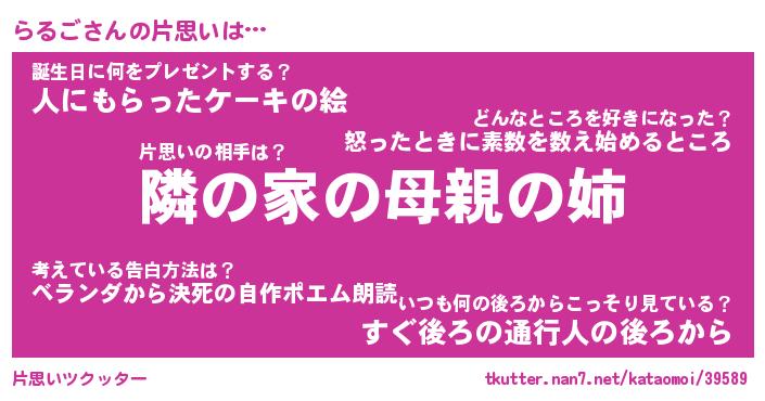 | 意味不明あだ名 | 『ペロリンらるご』『らるごフォーエバー』 |