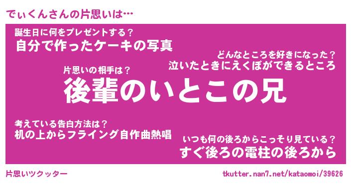 | 意味不明あだ名 | 『ペロリンでぃくん』『永久保存でぃくん』 |