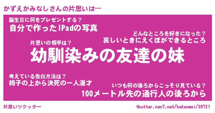 | 男性向けラノベタイトル風あだ名 | 『かずえかみなしの憂鬱』 |
