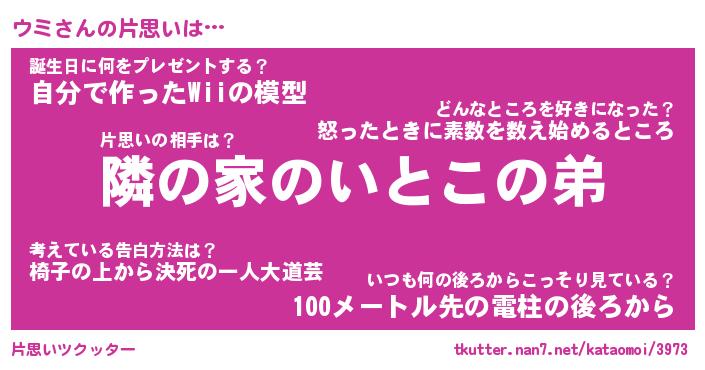 | 胡散臭い通販商品みたいなあだ名 | 『必ず成功する水晶球…その名も「ウミ」』 |